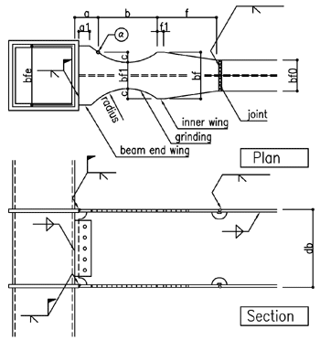 | Reduced section:reduced bottom section where beam flange width is bf1 |